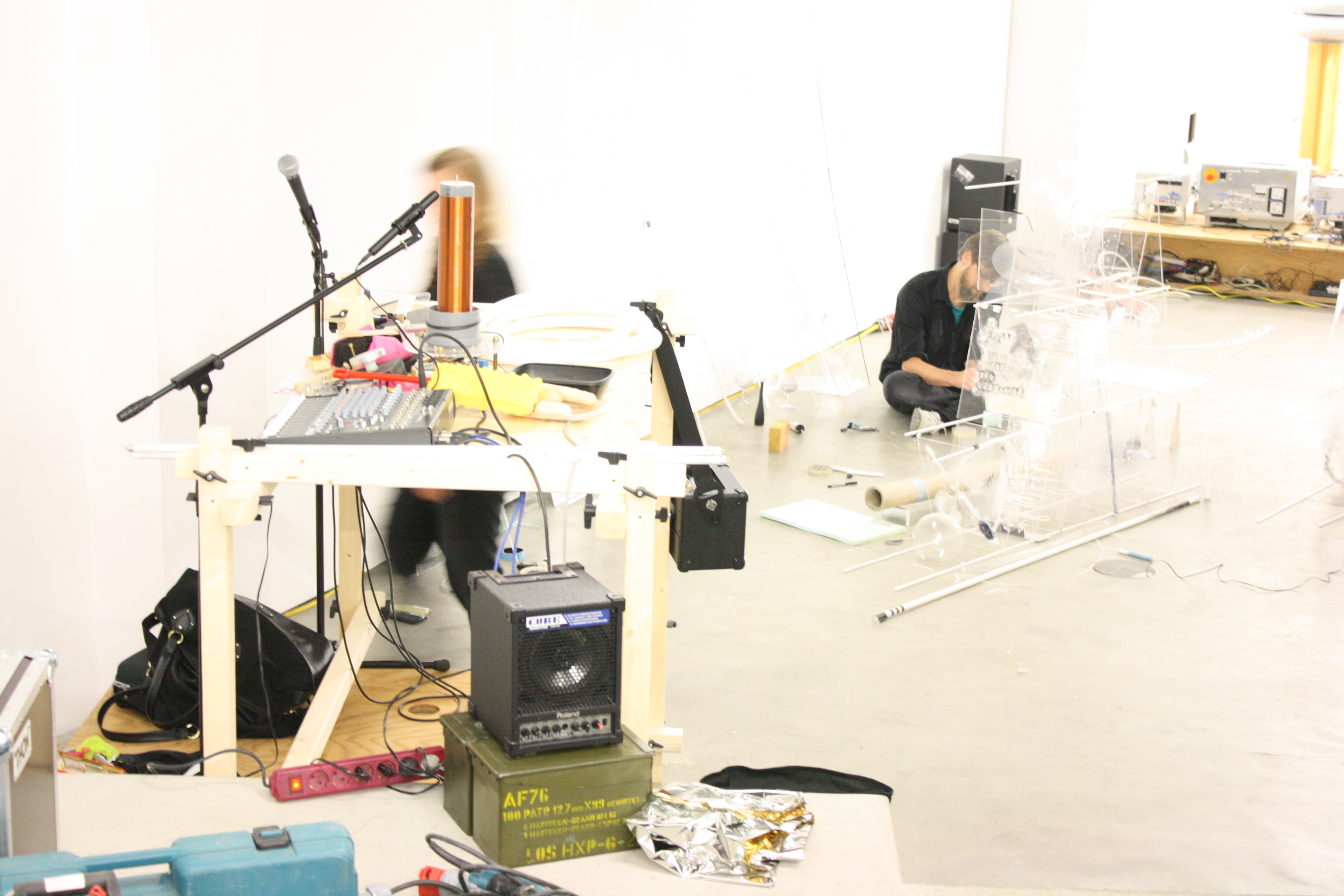 The highly charged collection of items diffuse over the course of the event – the exhibition objects are spread and scattered across the space of AIL. The different daily constellations offer a new way of looking at the material. Additional discursive formats expand the field of research and explore the phenomenon of electrostatic discharge in other practices and areas of expertise.