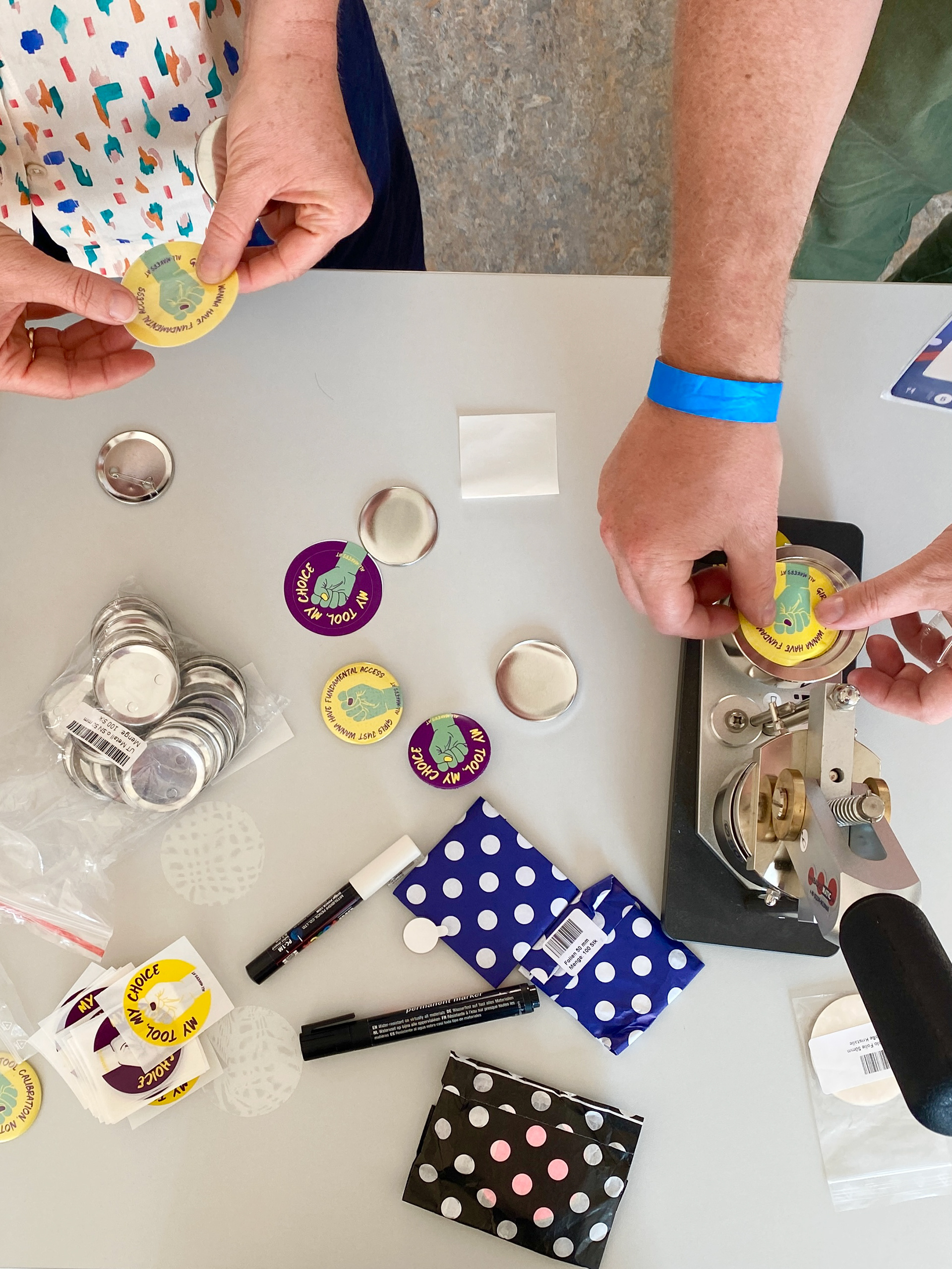 Additionally, we developed a low-threshold communication strategy that playfully and accessibly addresses relevant aspects of CoCs through the lens of our relationships with things. Using posters, stickers, and badges, this approach offers makerspaces tangible entry points for conversations around participation, safety, and care, and is available online as a resource for others to adapt and use.