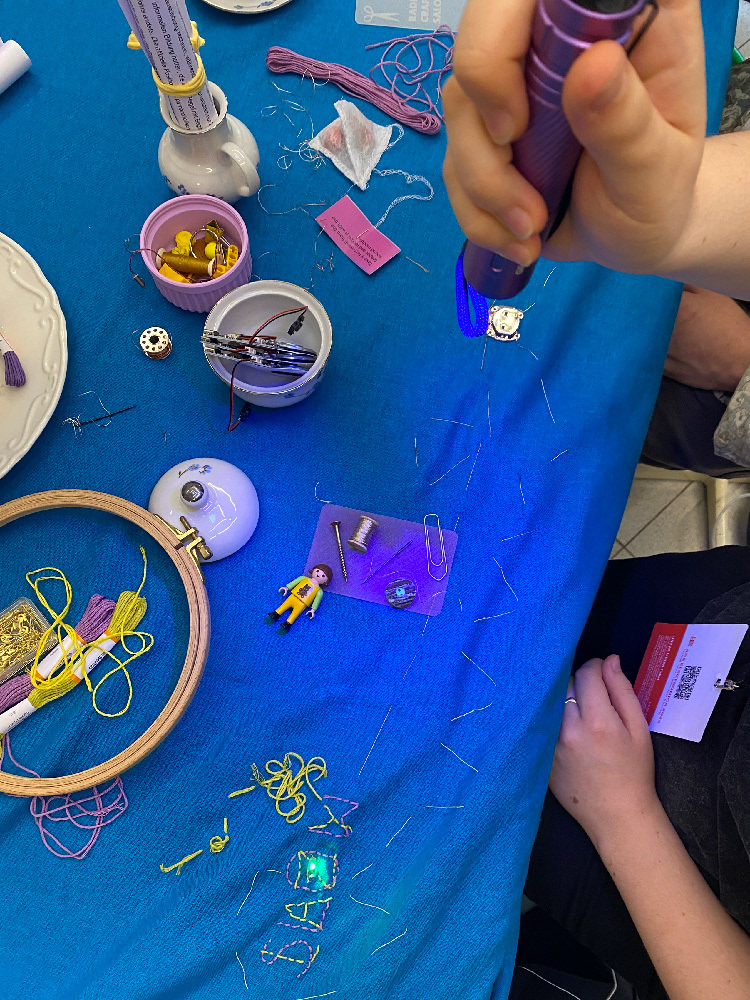 We are hosting a radical crafting salon as a conversational space for a collaborative stitch action. In this session, we welcome everyone to join a round table with invited scholars and e-textile practitioners in a cooperative, subversive, and anti-efficient stitch action, to mess with words, yarns, and sparks. Come and take your electric needle for a walk!